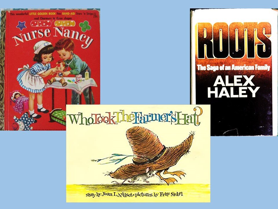 Nurse Nancy by Kathryn Jackson (because she took care of those around her, she inspired me to become a nurse) Who Took the Farmers Hat? by Joan L. Nodset (my first mystery, filled with so much empathy) ROOTS by Alex Haley (see blog post: ‘L’ is for Libraries)